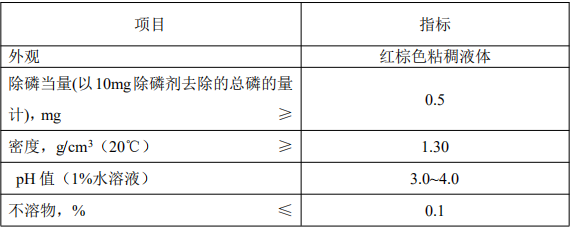 1. 本药剂与磷酸盐形成碱式磷酸盐的复合难溶络合物,除磷深度更深;
